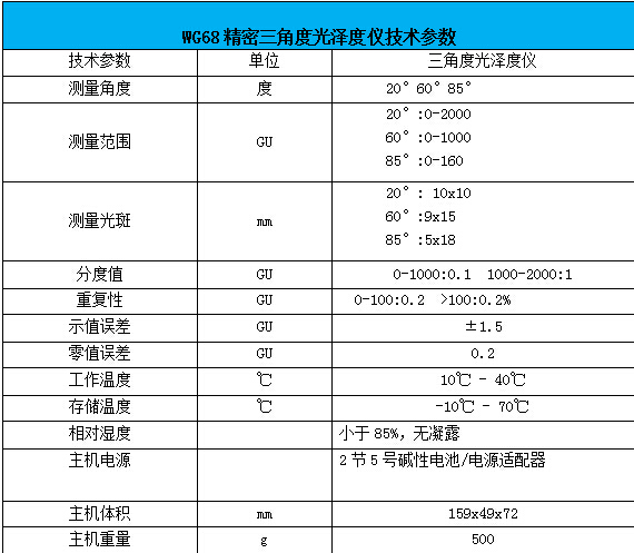 WG68光澤度儀符合國家JJG 696-2002計量檢驗規程中的一級工作機認證的儀器。WG68采用長壽命光源,重復性好、體積小、精度高、穩定性好。目前數據精確度已經跟德國儀器數值非常接近,達到了國際先進技術水平!